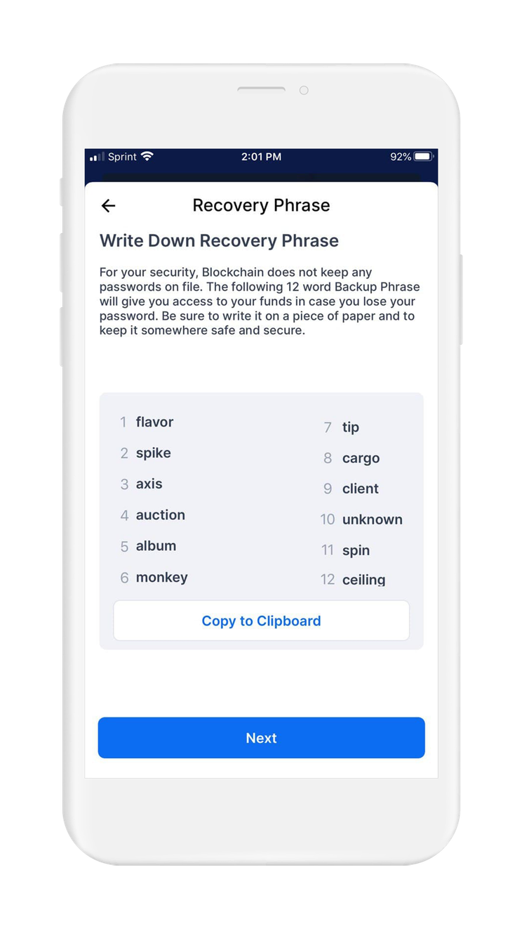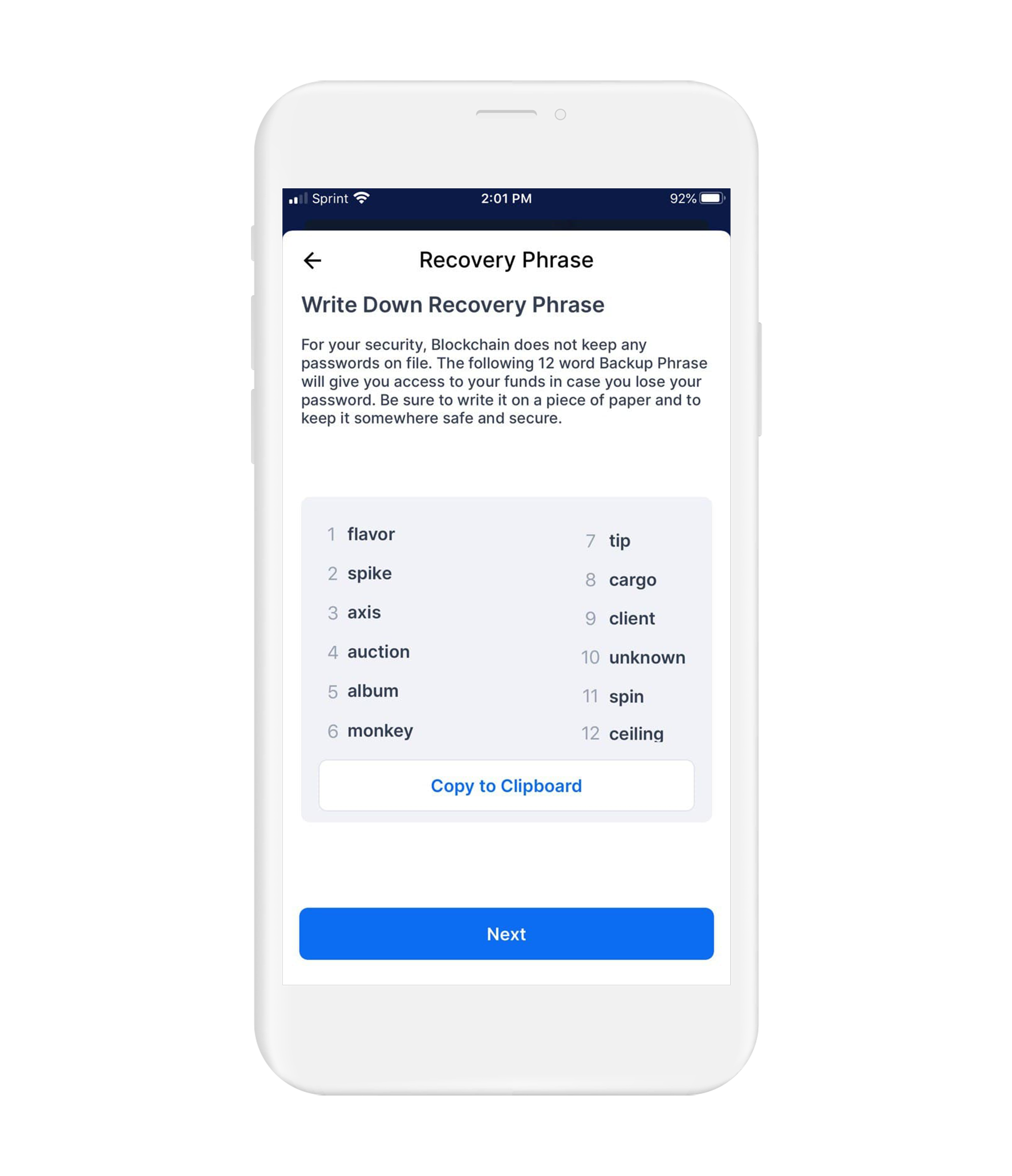A Blockchain Wallet ID is simply a username for your Blockchain account. The 12-word secret recovery phrase is the master key generated by your wallet. Tap View Recovery Phrase.
